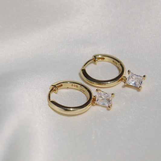 Solene Hoop Earrings - Gold Sterling Silver Emerald Drop Huggies
