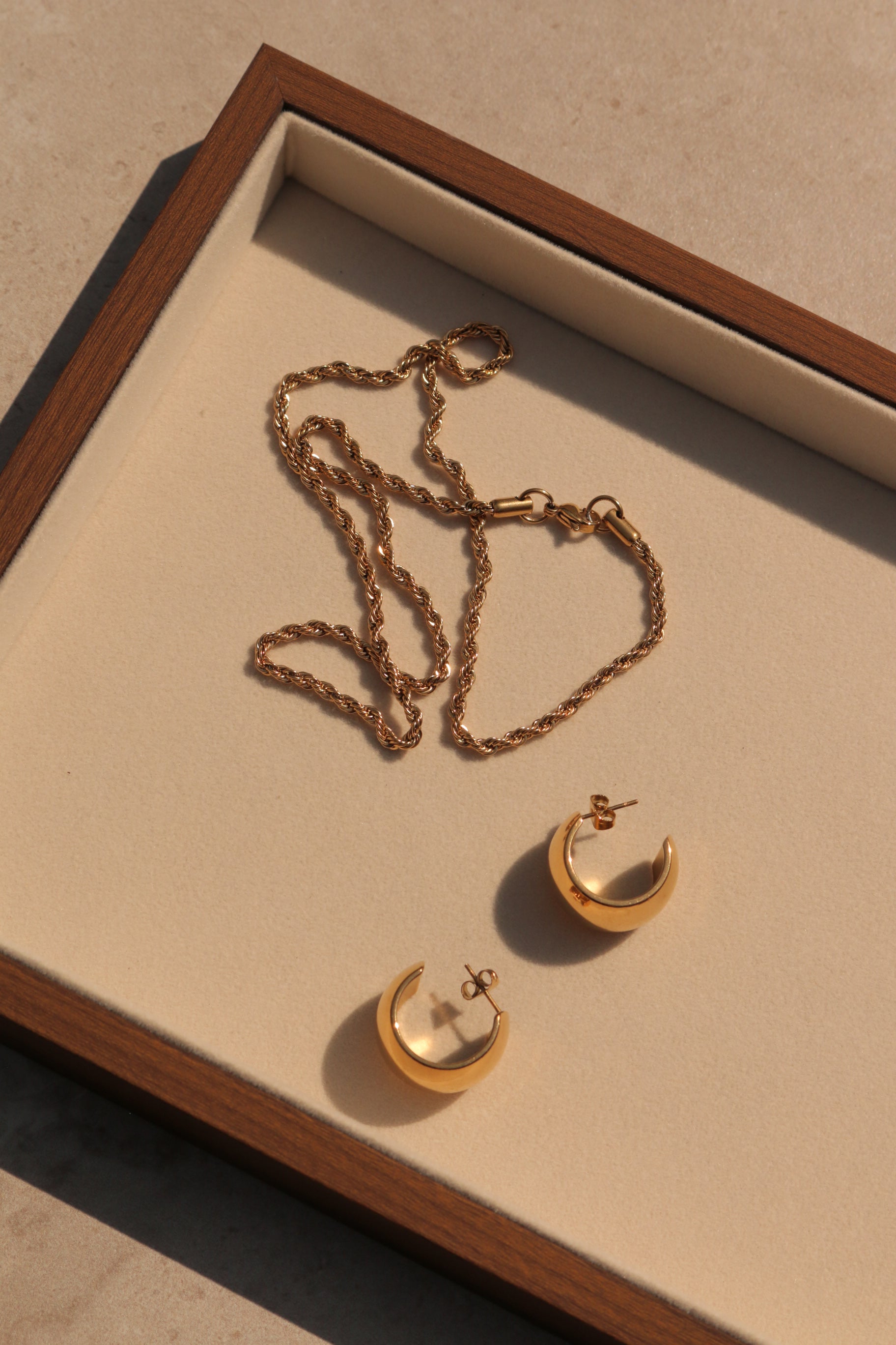 Designed to layer beautifully or make a statement on its own, the Isabella Twist Necklace adds effortless sophistication to any look. Crafted from stainless steel and finished with gold plating, this 2mm thick chain offers a timeless design with a modern edge (50cm length).